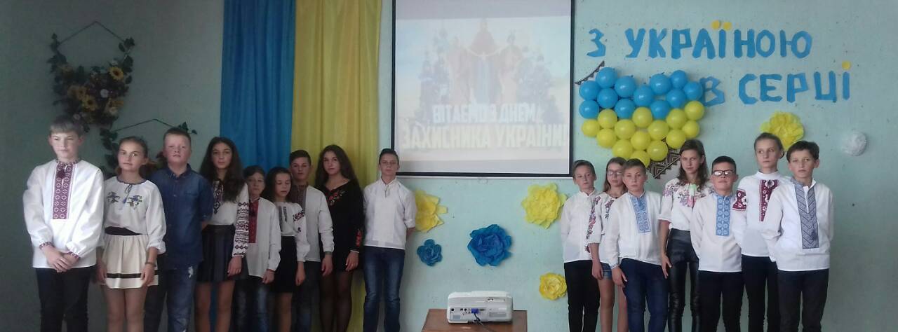 Із давнини, з до козацьких шляхів, 14 жовтня українці відзначають День Покрови Пресвятої Богородиці, День захисника України та День Українського козацтва. Тому учні 7-А класу разом із класним керівником Оприск Т.М. підготували та провели незабутнє свято «З Україною в серці». Школярі вшанували славних воїнів, визволителів України хвилиною мовчання. У виконанні учнів звучали пісні «Мирне небо» та «Україна це ти». Нагадали всім, що це свято не тільки народне і релігійне, а й національне. Воно єднає країну, закликає усіх до згуртованості перед сучасними викликами та загрозами. Нині, коли на східних теренах України точиться боротьба за незалежність і суверенітет держави, маємо бути гідними спадкоємцями духовних цінностей та продовжувачами багатих традицій і славних справ предків.